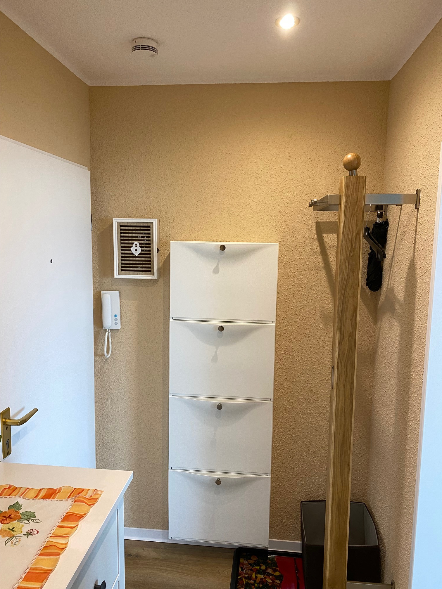 einer Garderobe ausgestattet.
