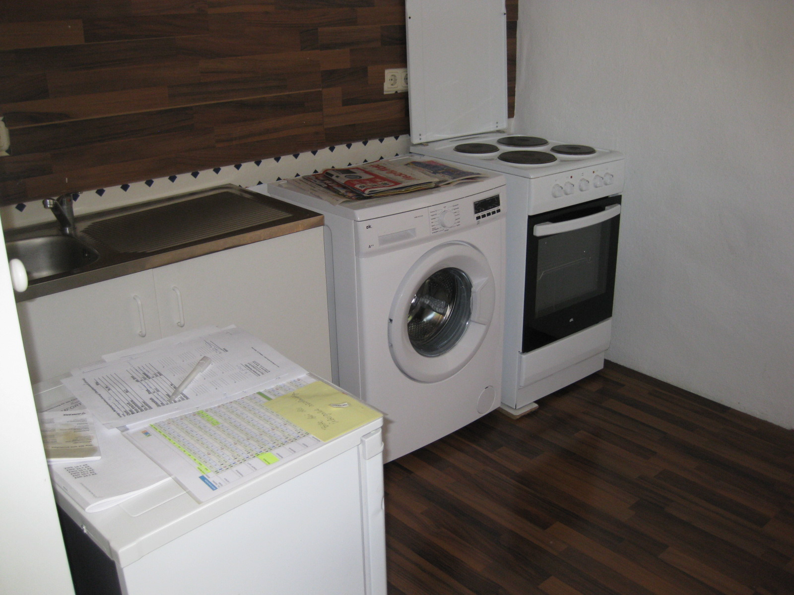 Laminatfussboden im Wohn-Schlafzimmer und Küche.