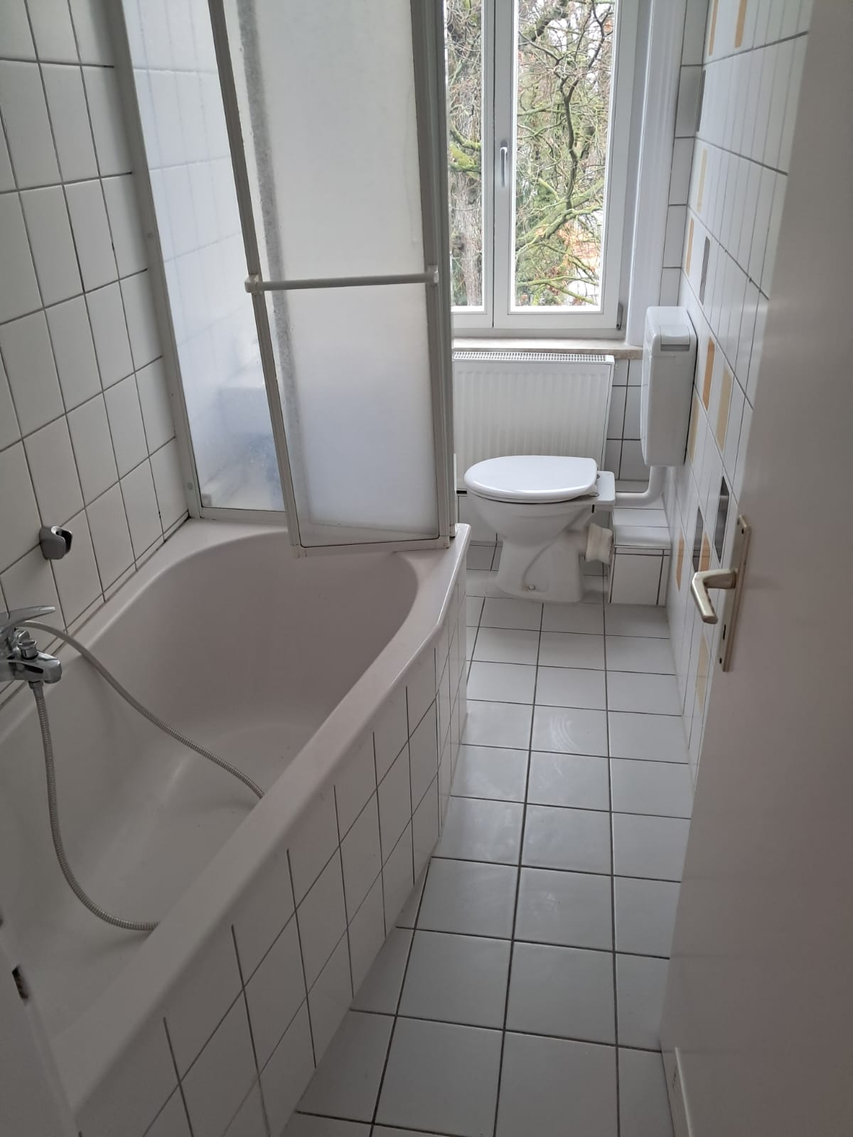 Zur Wohnung gehören insgesamt 4 Zimmer, eine geräumige Diele mit Kamin, der zur Nutzung überlassen wird, eine Küche sowie