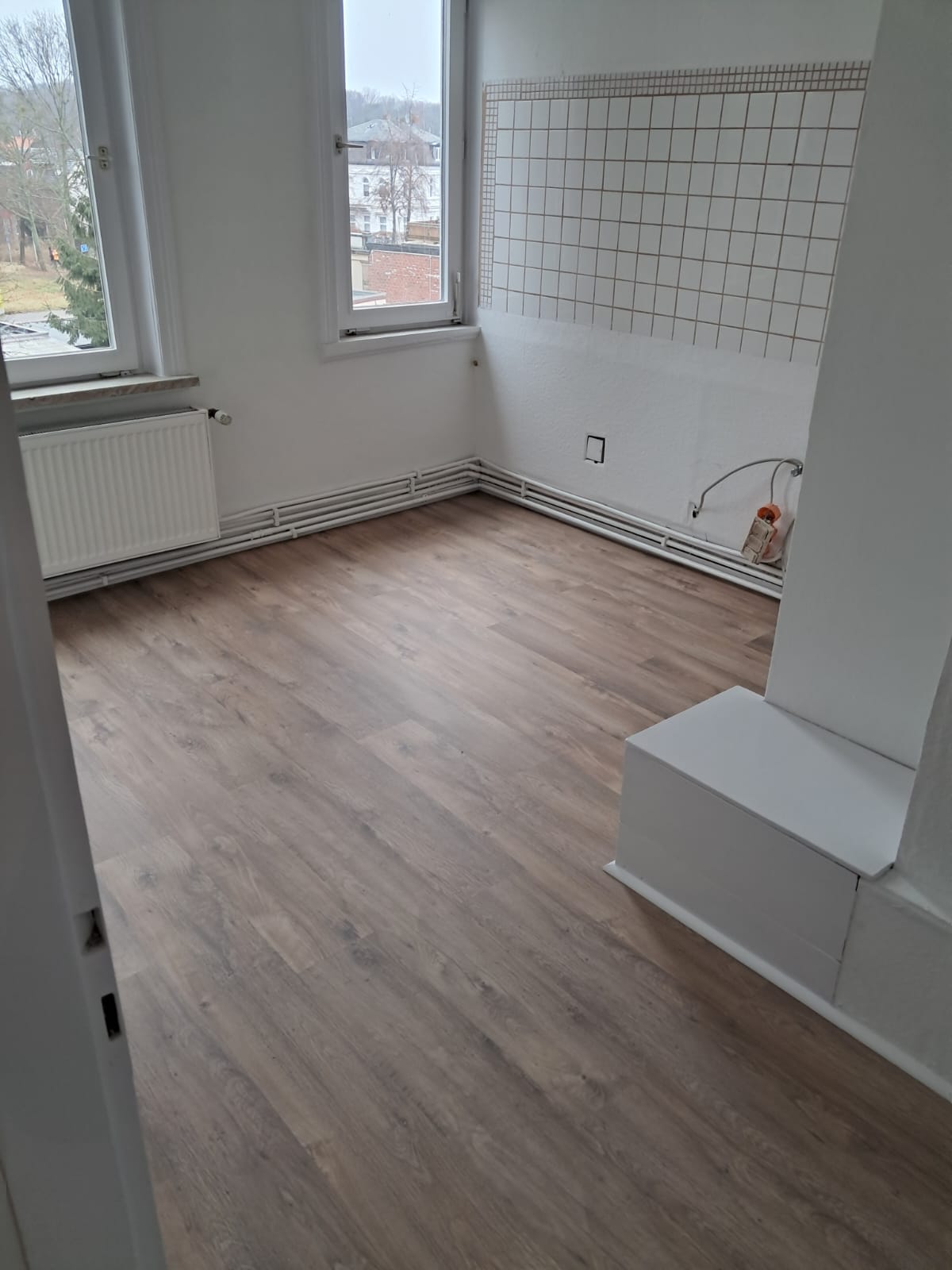 Die Wohnung wurde komplett renoviert. Alle Wände und Decken sind weiß strichen. Die Fußböden sind mit einem