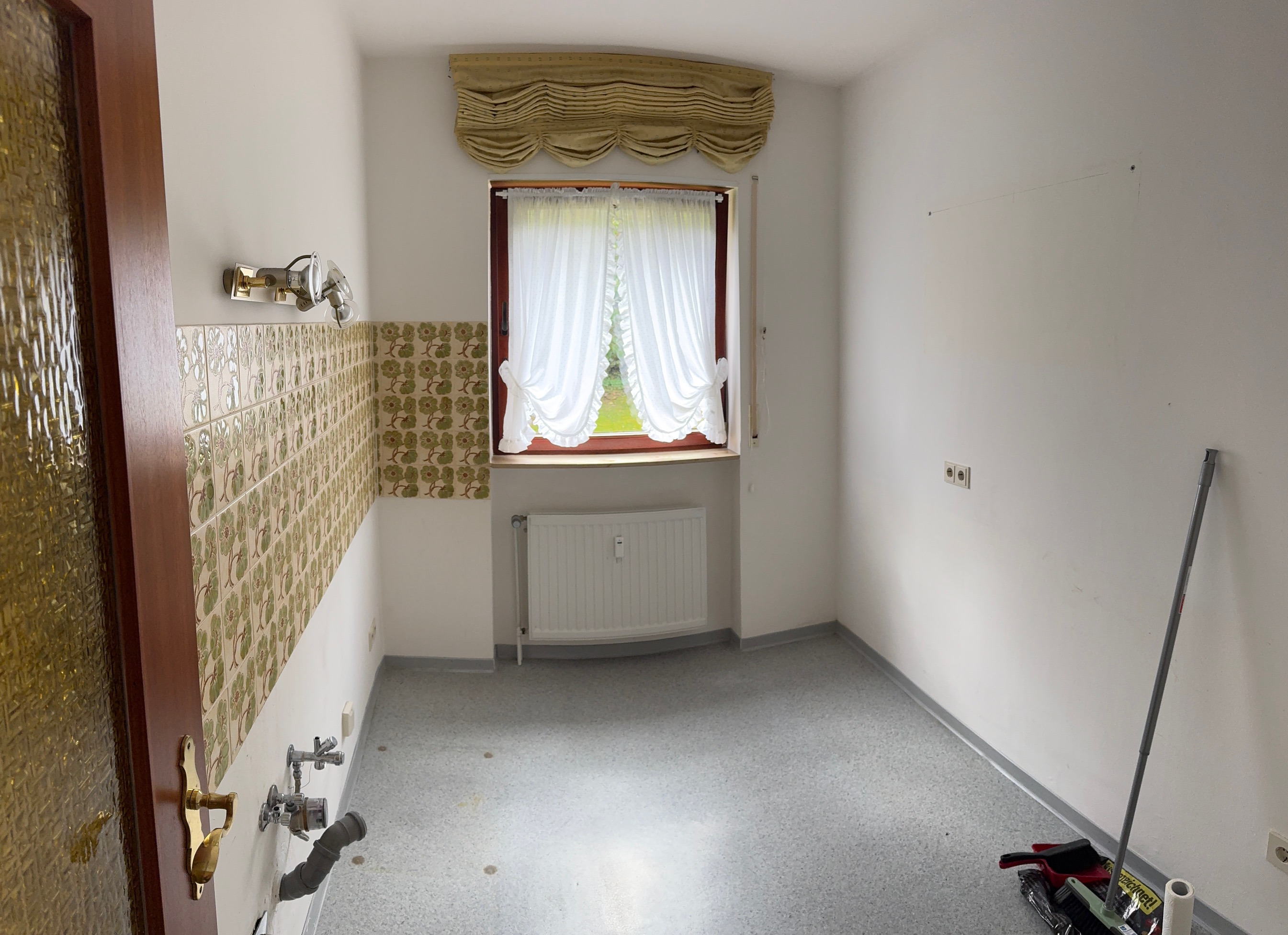 2 Zimmer, Küche, Bad, Flur, Balkon, Kellerraum und einer großen Garage